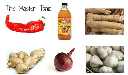 May 21, 2016 · turmeric, ginger, garlic, onion, horseradish, chili peppers, and apple cider vinegar (international products) are the common ingredients used in a master tonic.